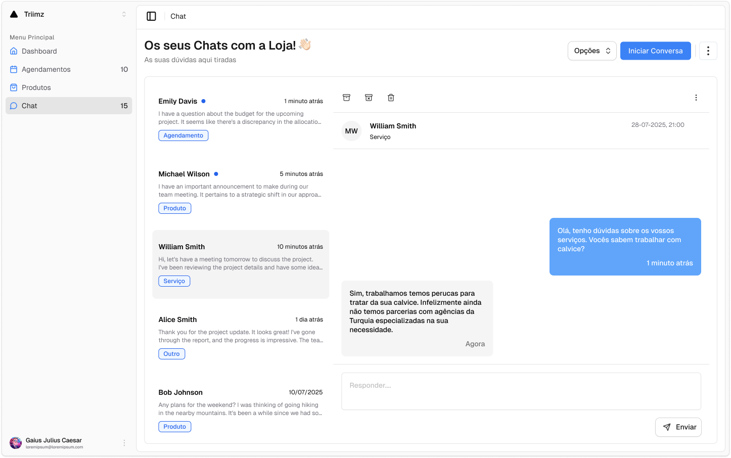Chat com IA para apoio a clientes e poupança de tempo ao barbeiro.